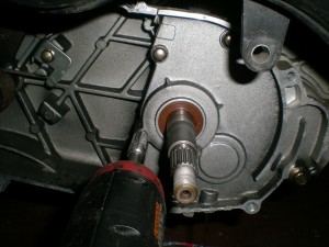ギヤオイルを抜き終わったら、プーリー側からミッションケースを