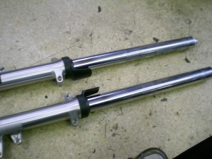 フロントフォークのオーバーホールの様子は、今回の記事も含めて