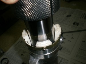 その前にスライドメタルとワッシャをアウターチューブに打ち込みます。