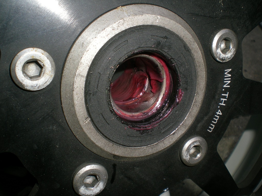 あと、忘れずにホイール側のベアリングにもグリスをしっかり塗っておきましょう。