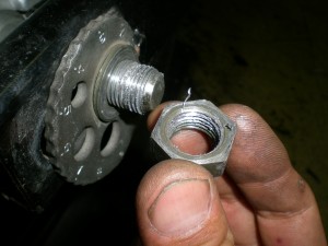 TW200Eのスプロケットはボルト、ワッシャ、ナットで固定されていますので