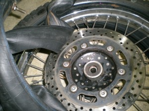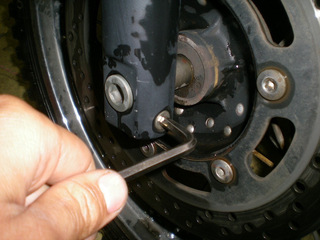 アクスルシャフトを引き抜いたらあとはフロントホイールを取り外すだけです。