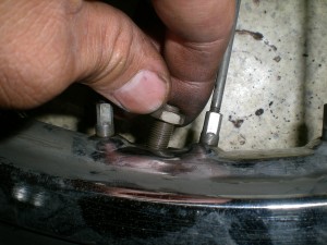 ブレーキキャリパーを取り外したら、次はフロントフォーク底部にある
