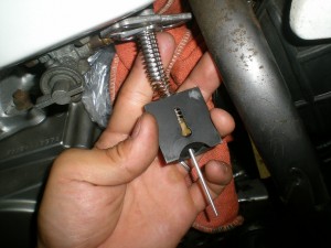 引き出しておき、キャブレターにスロットルバルブを差し込みます。