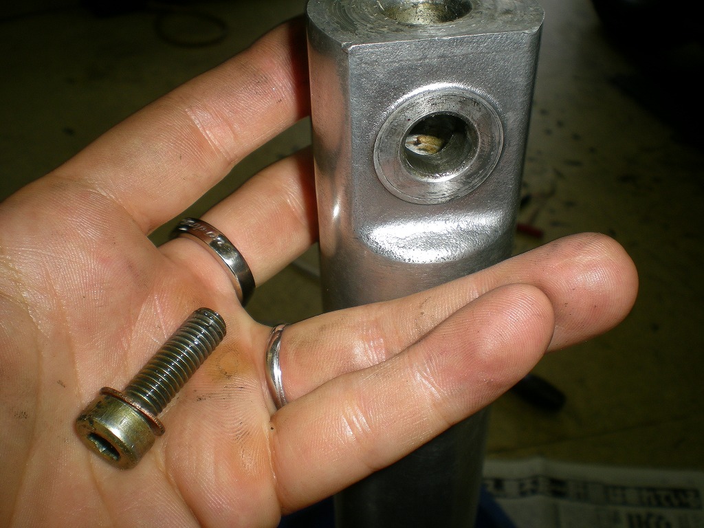 アウターチューブ底部にあるドレンボルトを取り外しましょう。