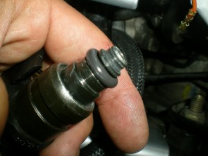 んで次はデリバリーホースにインジェクターを差し込みます。