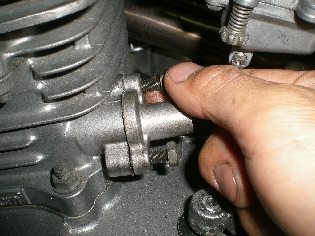 まずは伸びきっているカムチェーンテンショナーを一番短く縮めてっと。