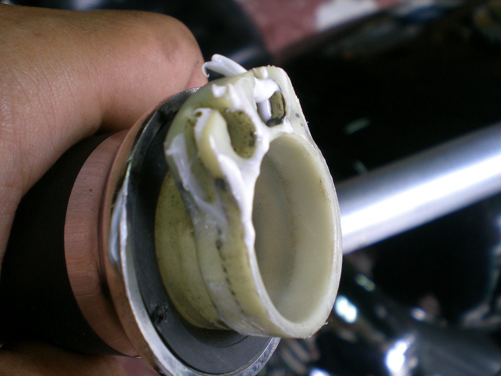 まずは切れている戻し側のスロットルワイヤーを確認っと。