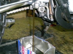 キャブレターを浸け込んでいる間に、エンジンオイルの交換を行います。