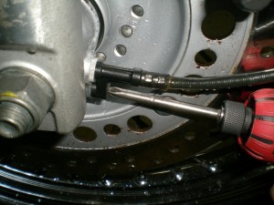 ブレーキキャリパーを取り外したら、次はスピードメーターケーブルを