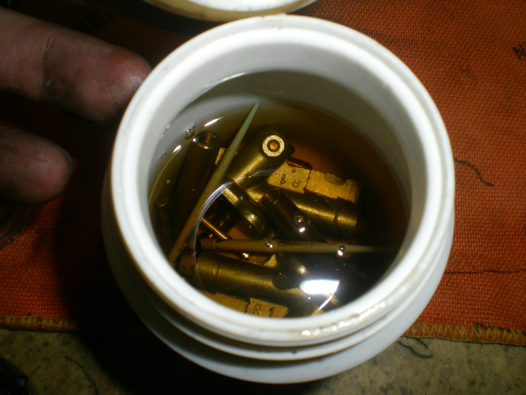 細かいジェット類に関しては別容器に入れて浸け込んでおきます。