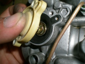キャブレターにエアーカットバルブを取り付けてスプリングをセット。