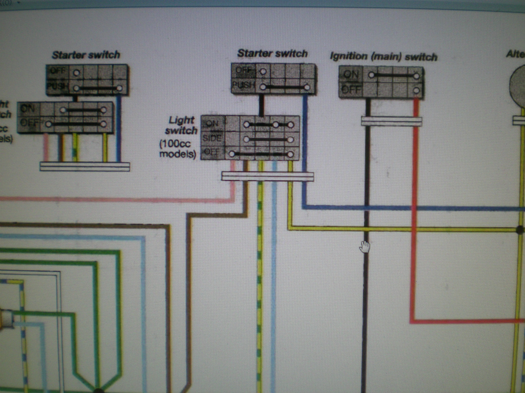 んでスピードファイト100の配線図を見てスイッチボックスの導通チェックです。