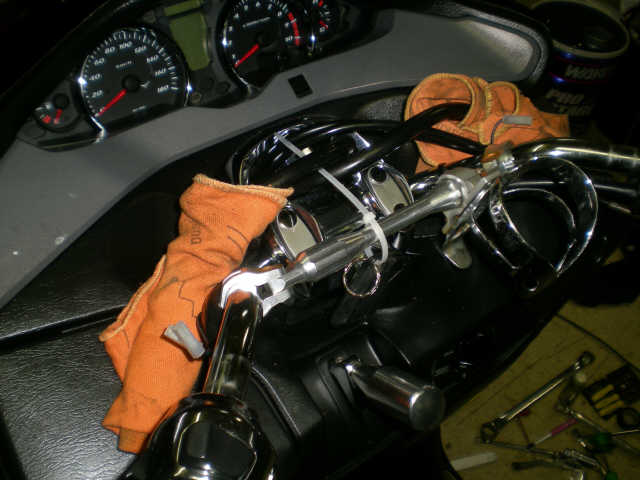 カウリングが周辺に多いので、ブレーキフルードの付着に細心の注意が必要です。