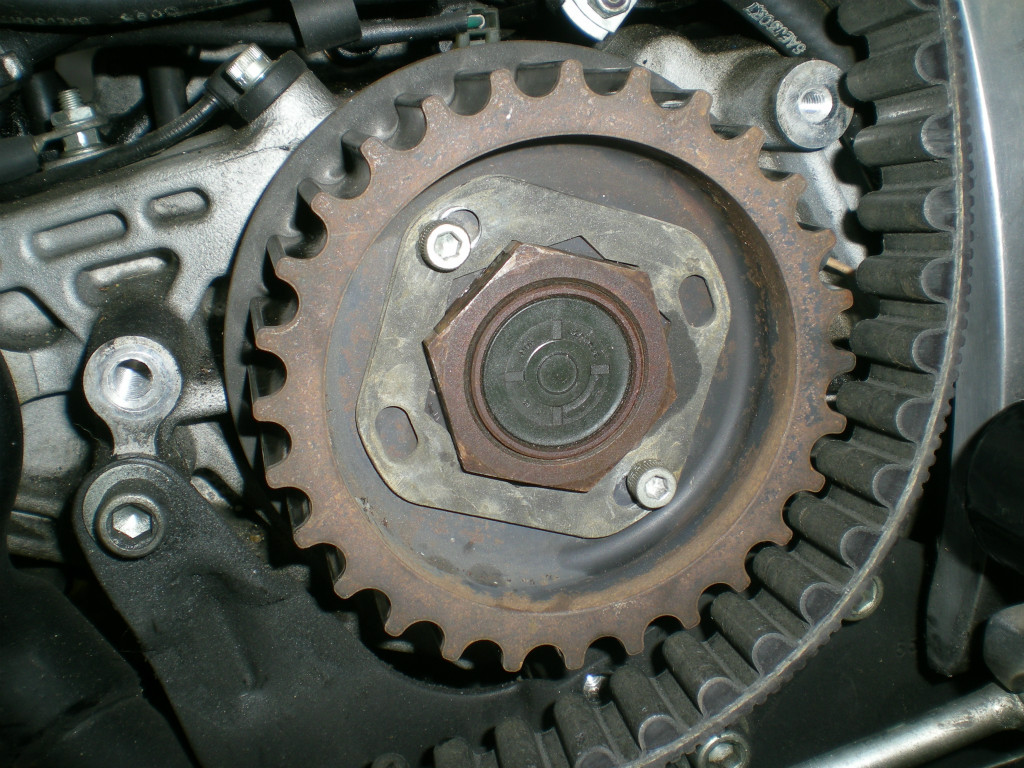 スプロケットカバーを取り外して、巨大なソケットレンチを