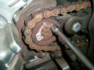 チェーンを新品に交換するため、チェーン引きは後ほど最大限まで