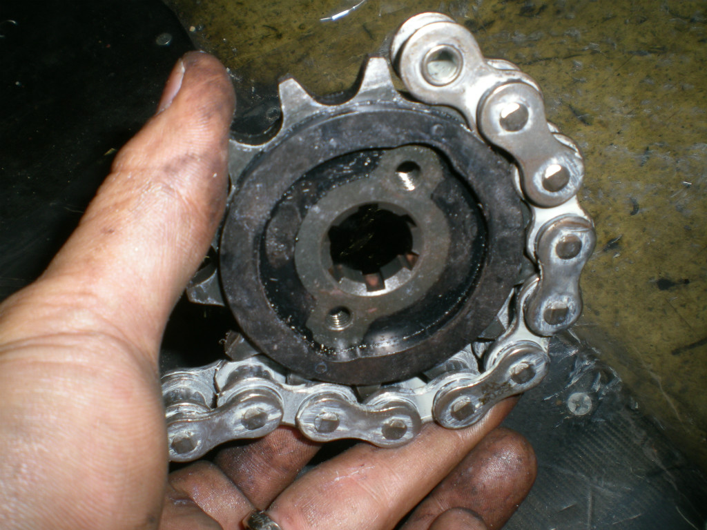 これに古いチェーンをかけた状態でフロントスプロケットを