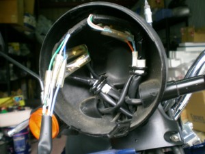 ヘッドライトケース内部からブレーキスイッチの配線ギボシは