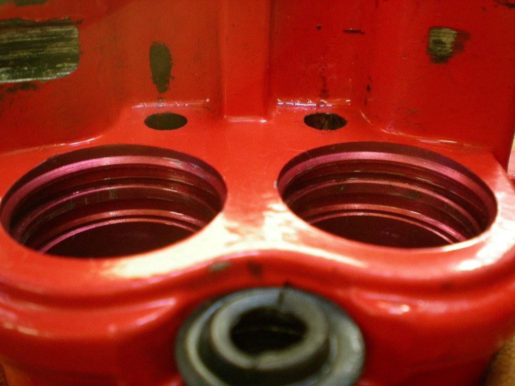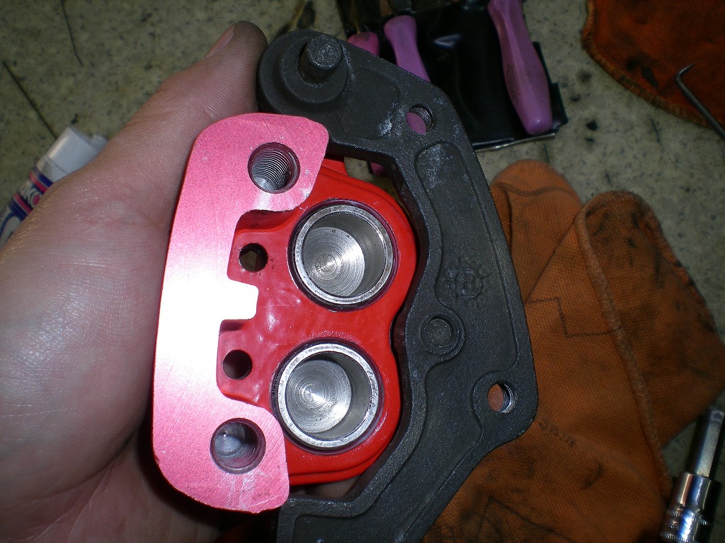 キャリパーツーピース構造ですので、まずは裏側から