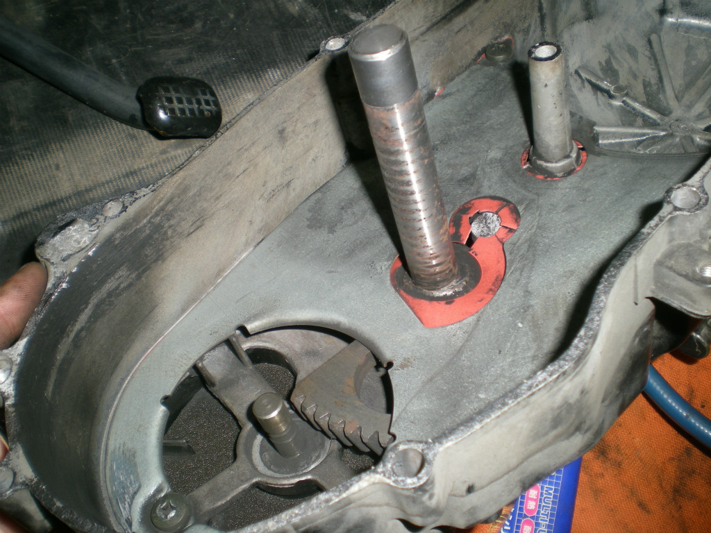 クランクシャフトのスプライン(ギザギザの部分ね)をワッシャで潰してしまう