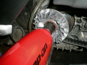 ここでVベルトをクラッチ側から取り付けて、