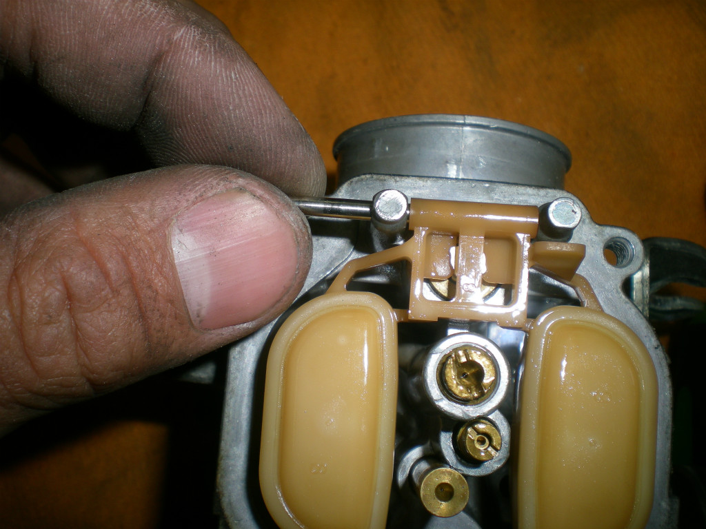 フロートピンを抜き取ると、こんな風にフロートとフロートバルブが