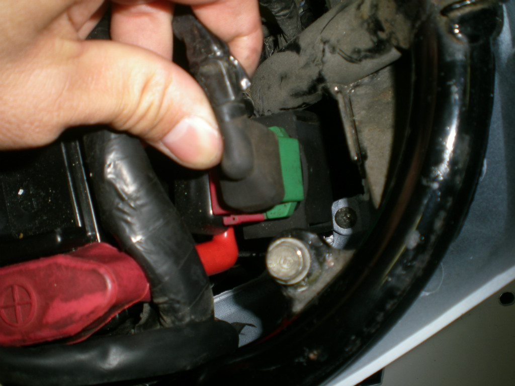 シート下にバッテリーとスターターリレーがあります。