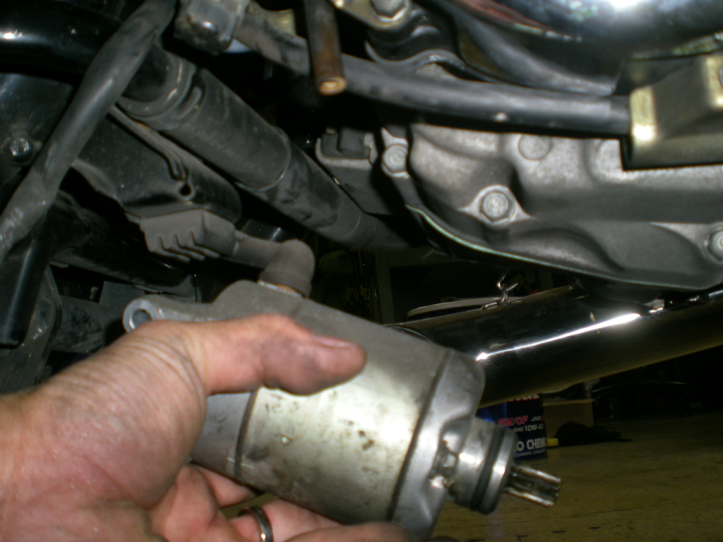 抜けたセルモーターをグリグリを動かしながら、