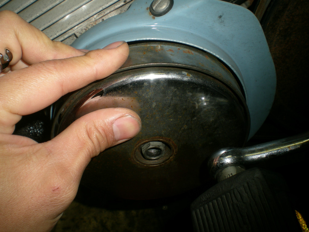 硬くて外れにくい時は、ボルトの頭を鉄ハンマーなどで
