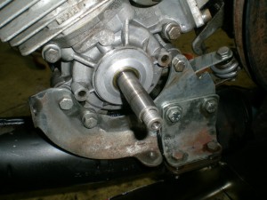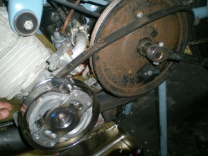 この状態からエンジンを押しながらドライブプーリー下辺に掛けてあるベルトを